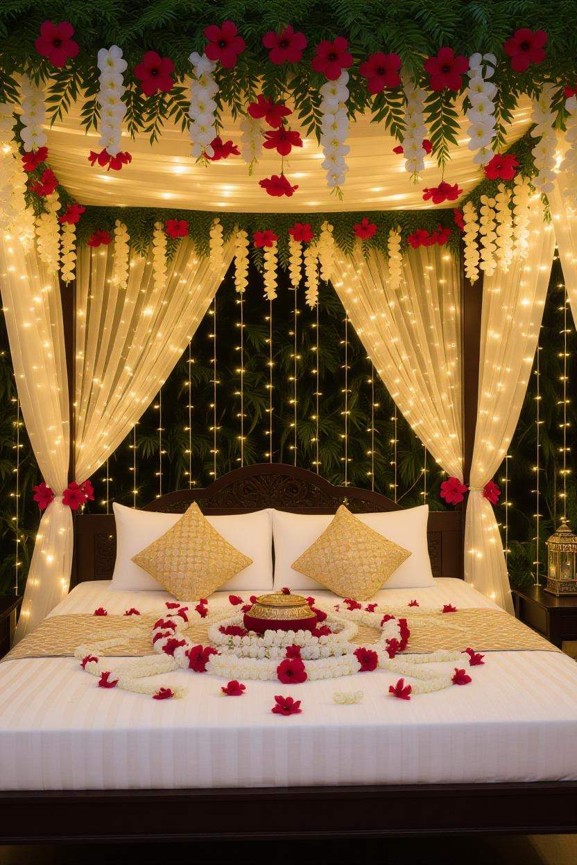 • Romantic Surprise Setup: Red roses, heart-shaped balloons, candles & fairy lights.